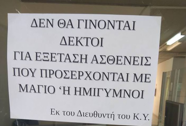 ΔΕΝ ΘΑ ΓΙΝΟΝΤΑΙ ΔΕΚΤΟΙ ΓΙΑ ΕΞΕΤΑΣΗ ΑΣΘΕΝΕΙΣ ΠΟΥ ΠΡΟΣΕΡΧΟΝΤΑΙ ΜΕ ΜΑΓΙΟ Ή ΗΜΙΓΥΜΝΟΙ.
