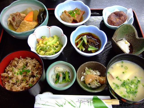 Τα γιαπωνέζικα πιάτα είναι πάντα αρκετά απλά, με βάση γευστικά προϊόντα, χωρίς αλλοιώσεις, ώστε να κρατάνε την διατροφική τους αξία. Εκτός από το konjac, βασικό, υγιεινό στοιχείο διατροφής των Ιαπώνων, η κουζίνα βασίζεται σε φρέσκα προϊόντα εποχής, τα οποία σερβίρονται σε διαφορετικές συνταγές, με τρόπο απλό και αισθητικό.