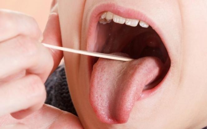 - Λευκή, ή κιτρινωπή επίστρωση, ή “μπαλώματα” στις αμυγδαλές